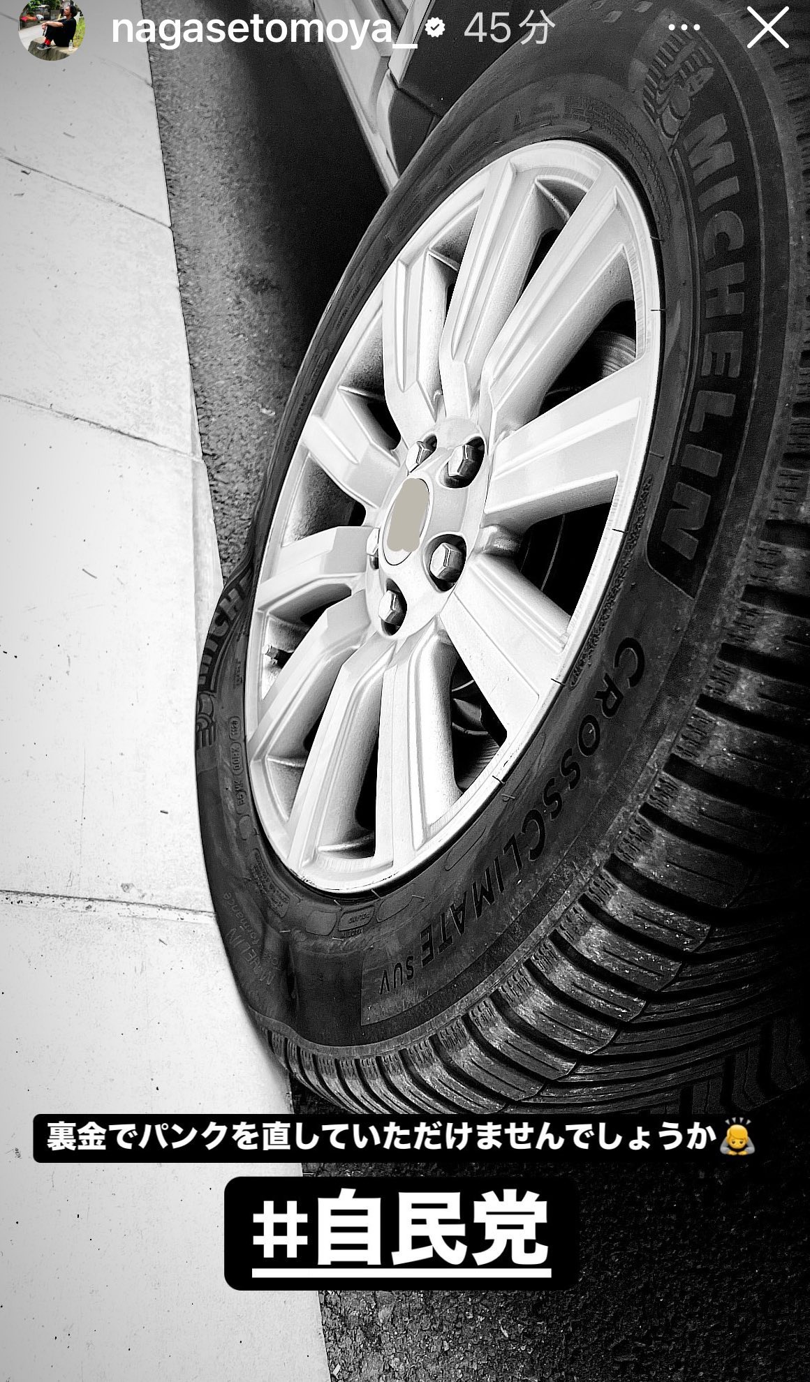 長瀬智也「車のタイヤがパンクした…自民党さん裏金で直してもらえませんか?」→炎上