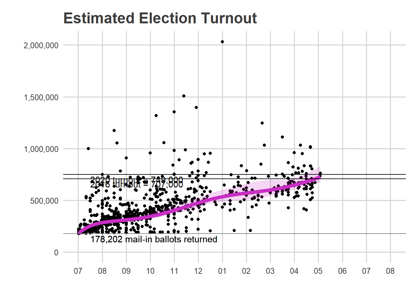 2020年の77万票を超えた時点でハリスの大統領選挙勝利は確定する。