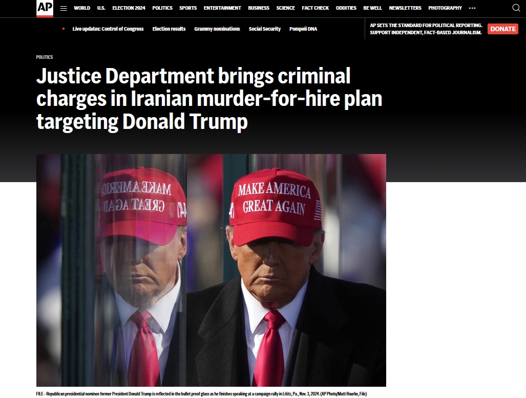 【速報】FBI、ドナルド・トランプ氏を狙ったイランの殺人依頼計画を阻止