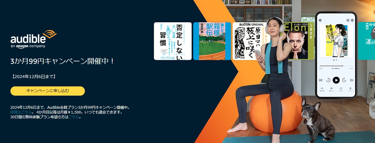 【速報】毎回祭りになる『Audible会員』3ヶ月4,500円分を99円で期間限定受付開始「逃さずやれば年間数百円でいけんじゃね」「大人向け聞きながら寝てるわw」