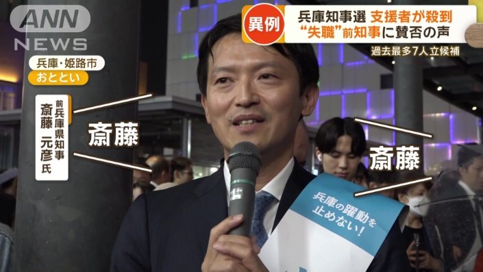 前職の斎藤氏、再選へ猛追 兵庫県知事選情勢