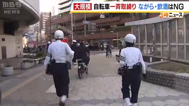 11月から罰則が強化された自転車での違反。大阪府警が過去最大規模の一斉取り締まりを行いました。