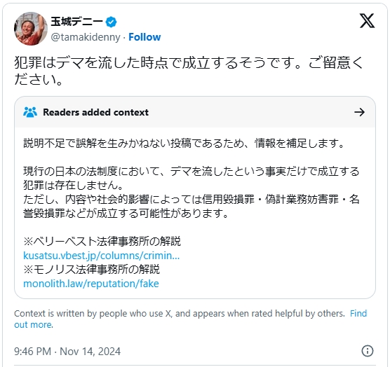【速報】デニー知事、豪雨などに関連して警告「犯罪はデマを流した時点で成立」→コミュノ「デマを流しただけでは犯罪は成立しません」
