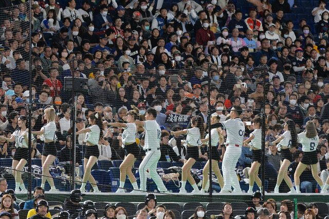 この日は両チームの応援合戦にも注目が集まっていた。ところが韓国からの公式応援団が「席がない」との理由で入場できず、一塁側のビジター応援団の席も台湾応援団が占拠。韓国ダッグアウトの上にアンプが置かれ、台湾の応援曲が鳴り響いた。客席が台湾のファンで埋め尽くされる中、両国のチアリーディング対決もメディアでは注目されていた。それがフタを開けると一塁側も三塁側もダッグアウトの上は台湾応援団のチアリーディング。
