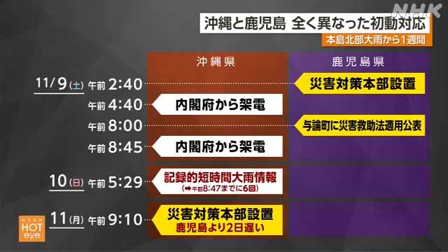 【画像】記録的豪雨での対応に差、沖縄と鹿児島の初動対応をNHKが分かりやすく晒して話題 玉城知事「私が判断できなかったことを猛省」