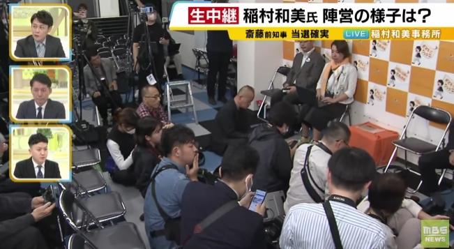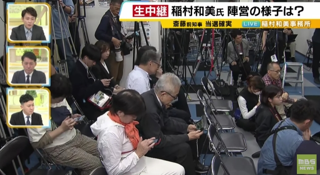 【兵庫県知事選】当初は稲村リードも20時開票で落選となった、稲村事務所の様子がこちらwwww