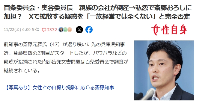 【速報】百条委員会・奥谷委員長 Xで拡散するデマを完全否定「一族経営では全くない」