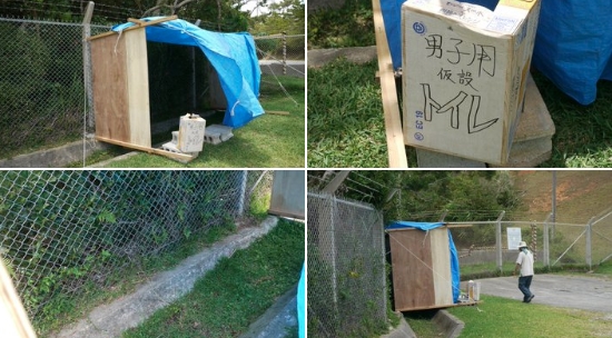反基地活動家が国有地内に無許可で設置したトイレ。