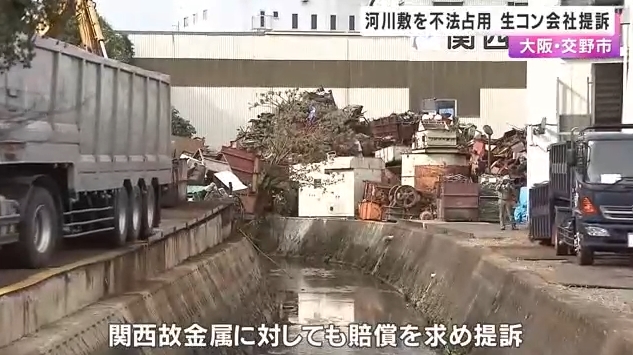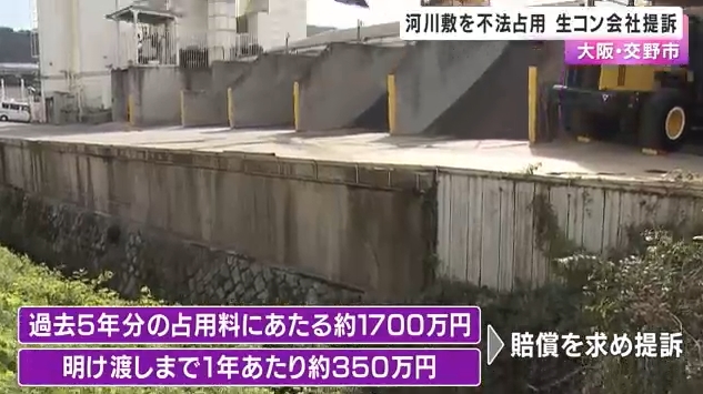 大阪府交野市が河川敷を不法に占用する生コンクリート会社など2社に賠償を求め訴えを起こしました。