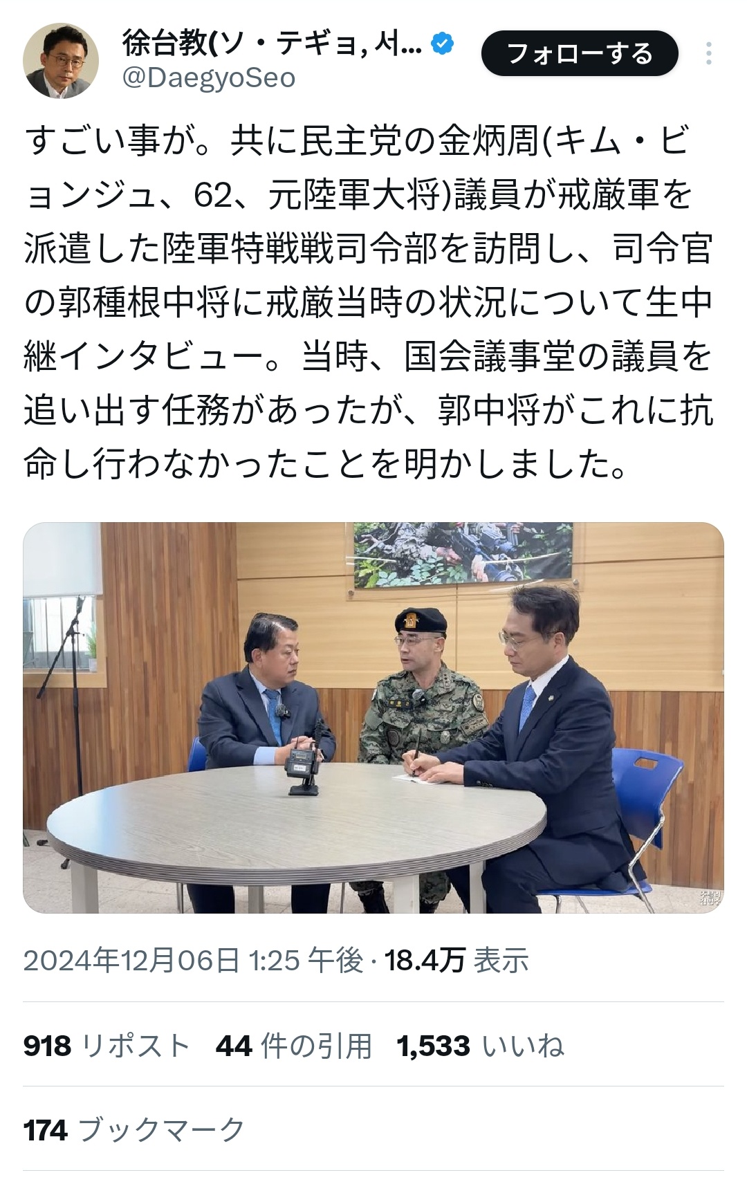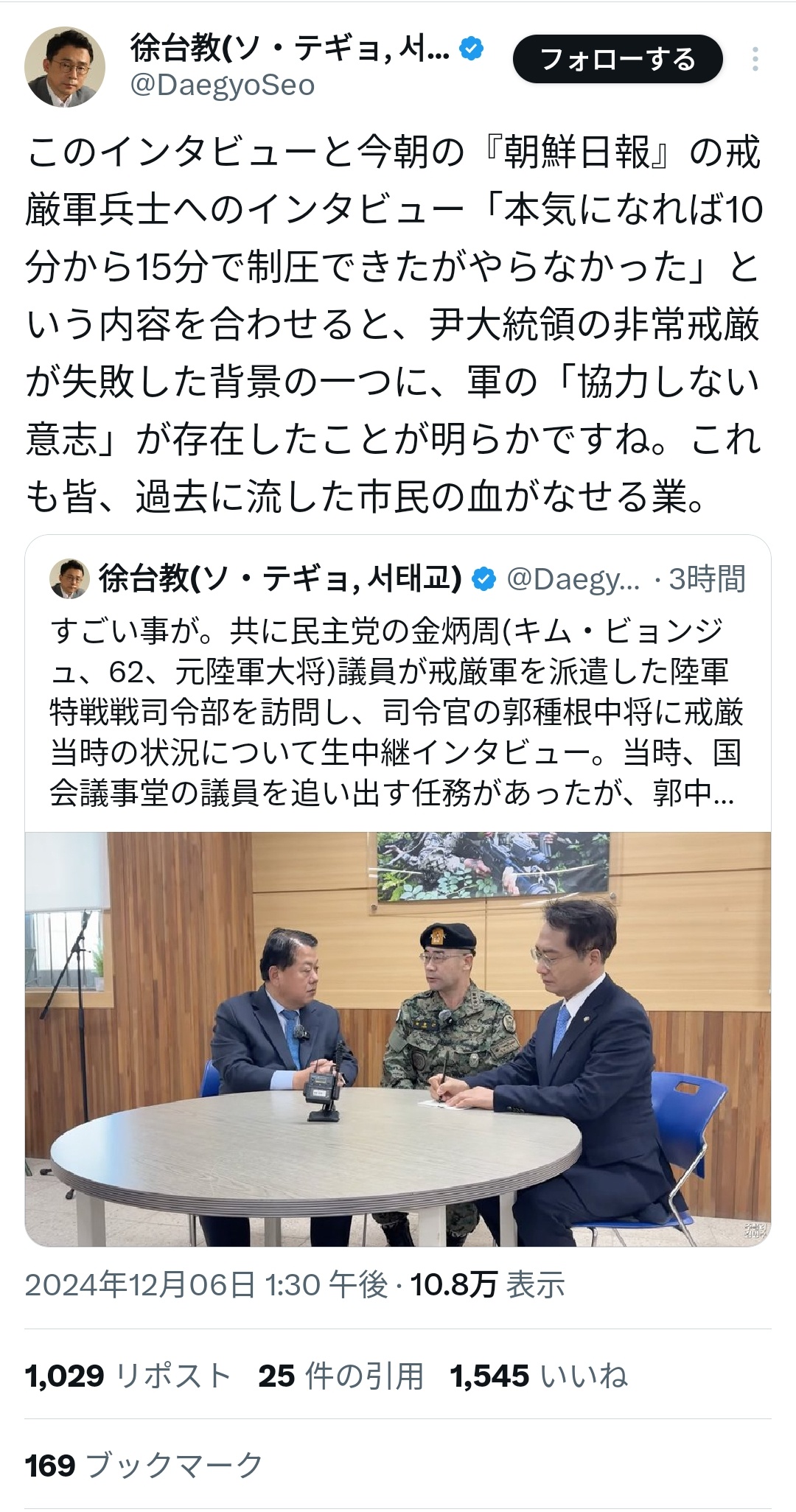 【速報】韓国軍、ユン大統領の国会議員排除命令を「拒否」していた