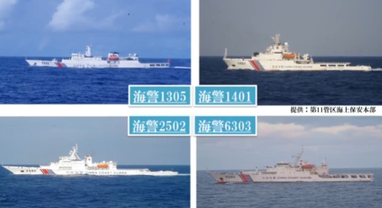 領海侵入したのは「海警1305」「海警1107」「海警1105」「海警1303」で、いずれも機関砲らしきものを搭載している。