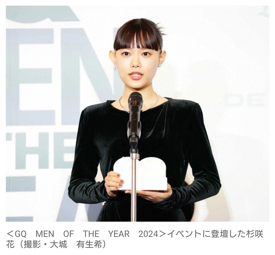 その年に最も活躍した各界の著名人を表彰する「GQ MEN OF THE YEAR 2024」。「ベスト・アクター賞」に、フジテレビ系「アンメット ある脳外科医の日記」や現在TBSで放送中の「海に眠るダイヤモンド」での熱演が話題の杉咲が輝いた。