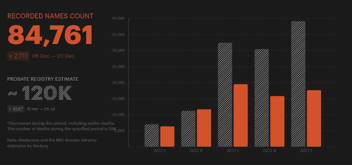 【BBCデータ含む】ウクライナ戦争の人的状況判明「死者数:ロシア8.4万人、ウクライナ6.1万人」合計の死傷者数は約100万人