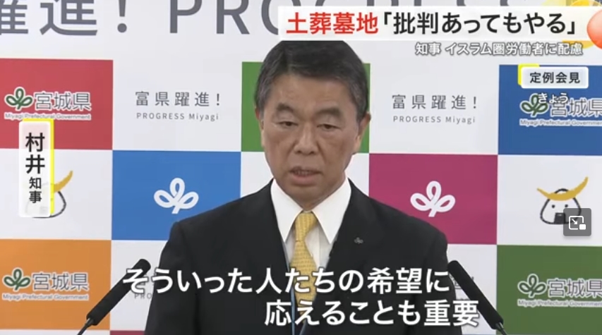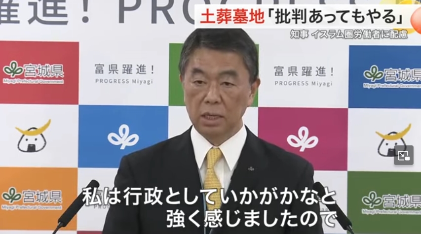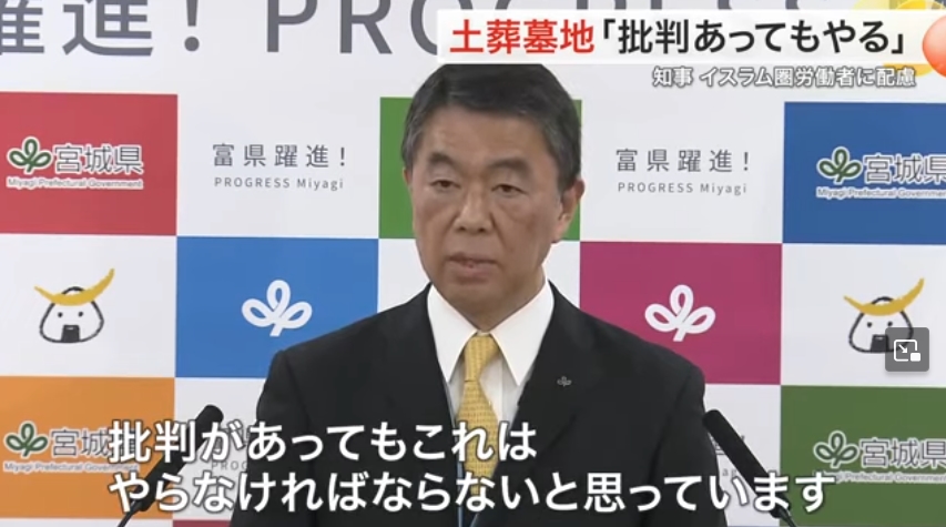 【速報】宮城県知事、「イスラム教徒の土葬」批判に対して強行声明とも取れる反論「批判があってもやらなければならない、希望に応えることが重要」