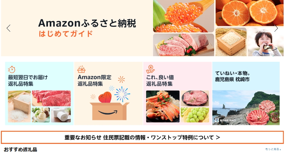 「他のポータルサイトよりも(アマゾンは)手数料が低いため、返礼品の3割ルールや5割ルールの中でも、寄付金額を他のポータルサイトより低く設定できる」■新着オススメ一覧