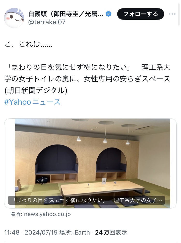 https://news.yahoo.co.jp/articles/3b3d4a1284d1f8beb5dc27da711389de83bdbd8d?source=sns&dv=pc&mid=other&date=20240719&ctg=lif&bt=tw_up■新着オススメ一覧
