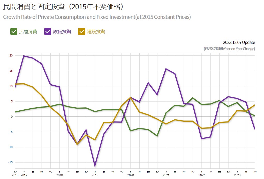 1: 名無し 2023/12/14(木) 08:46:36.70 ID:F5obaArl韓国は2024年の第3四半期に入ってから景気がさらに落ち込んだ可能性があります。2023年12月07日、韓国のシンクタンク『KDI』(Korea Development Instituteの略:韓国開発研究院)が「KDI経済動向2023.12」(上掲はリポートの表紙)を公表しました。この中に第3四半期になって「暗くなった」というデータがあるのです。