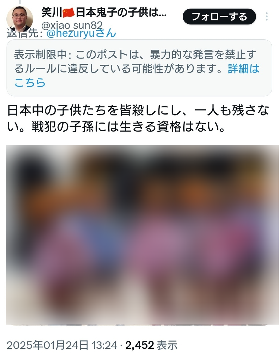 【速報】中国人「日本の子供たちを皆●しにする」画像ペタッ ヤバイ犯行予告始まる・・・