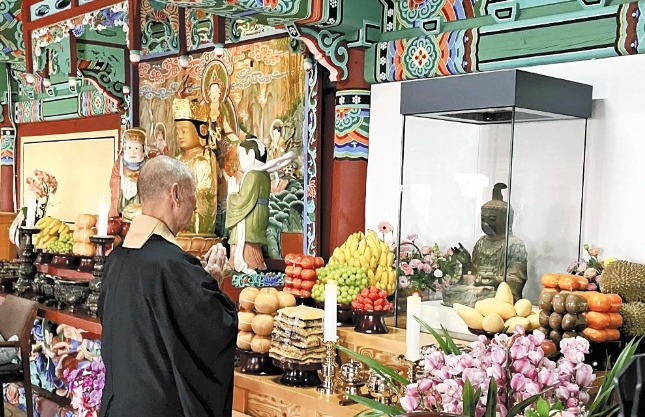 長崎県対馬市の観音寺から盗まれた県指定有形文化財「観世音菩薩坐像」の返還手続きのため韓国を訪れていた前住職の田中節孝さん(78)が26日、同市内で帰国報告の記者会見を開き、「ほっとしている」と安心した表情を見せた。仏像は韓国の浮石寺で法要を済ませた後、5月に対馬に戻る予定で、保管場所を関係者らと早めに決めたいとした。会見で田中さんは、現地で久しぶりに仏像と対面した時は「こんなに立派なお顔をされていたんだなと思った」と心境を語り、「返還に尽力していただいた日韓両国の関係者の皆さんのお陰だ」と感謝した。