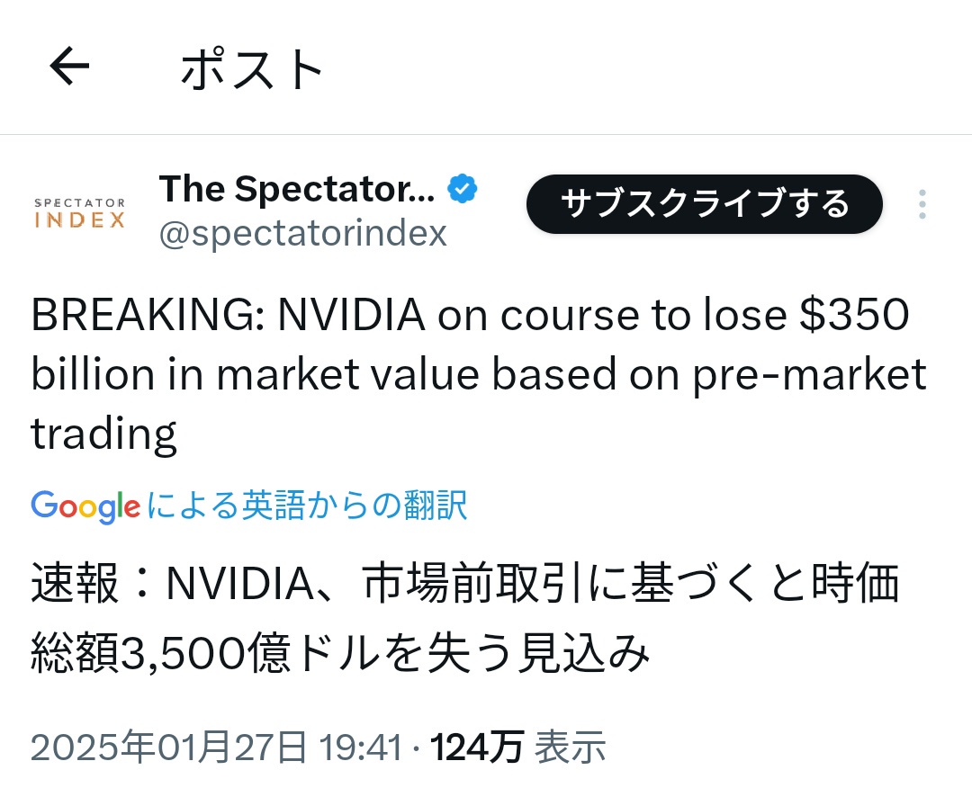 【速報】輸出制限の中で中国の創業1年目企業が驚異的な低コストな高性能AI公開→AIバブル大崩壊「NVIDIA時価総額が1日で90兆円消滅」※トヨタの時価総額46兆円