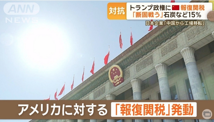 中国はトランプ政権の10%の追加関税に対して報復措置として、米国からの石炭や液化天然ガス(LNG)に対して15%、原油や農業機械、特定の自動車に対して10%の関税を課すと発表しました。これらの関税は2025年2月10日から施行されます。日本企業の工場移転:
