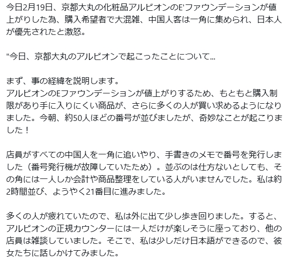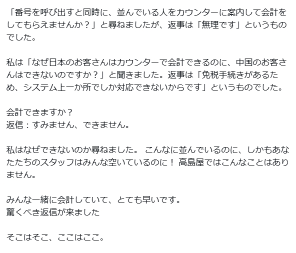 【動画】京都大丸の化粧品アルビオンで「中国人客は一角に集められ、日本人が優先され差別されたと激怒」→免税手続きのためシステム上の問題と判明