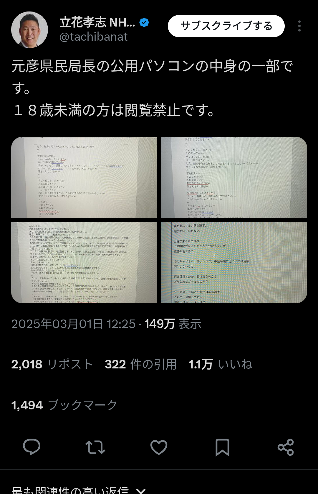 【衝撃】ついに立花孝志、亡くなった兵庫公用PCフォルダの中身を公開「クーデターに関するメモ」「匿名で斎藤派の部長に送った、斎藤派を仲違い狙った文書」「18禁小説」