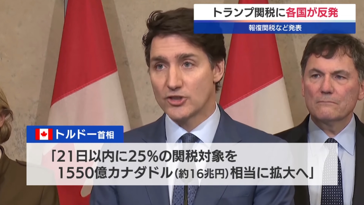 カナダ首相「即日報復とは別で21日までに16兆円規模に拡大させる」貿易戦争を宣言、関税攻撃に転じる 米国務長官「トランプ氏は譲歩するだろう」