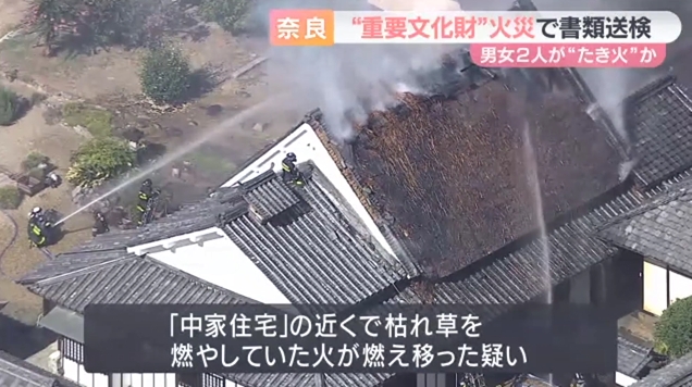 【奈良県】国の重要文化財近くで50代男女が焚き火、燃え移り火災発生「修復費用の約5億円はお前らの税金で」男女は重過失失火で書類送検