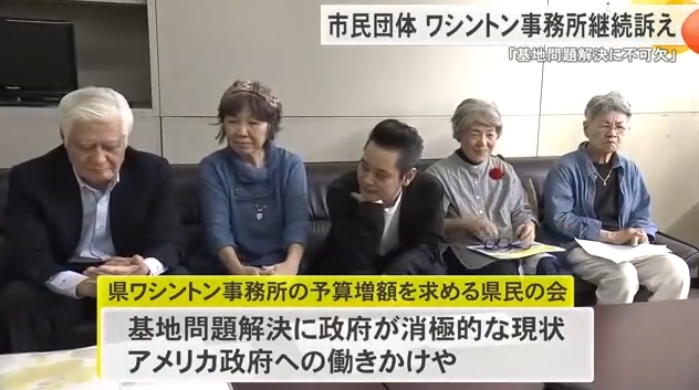 沖縄県のワシントン事務所について市民の有志でつくる団体が11日会見を開き、基地問題の解決に向け事務所の継続や予算の増額などを訴えました。「県ワシントン事務所の予算増額を求める県民の会」は、基地を巡る問題解決に政府が消極的な現状でアメリカ政府への働きかけや情報収集を行うワシントン事務所は必要不可欠だと訴えました。