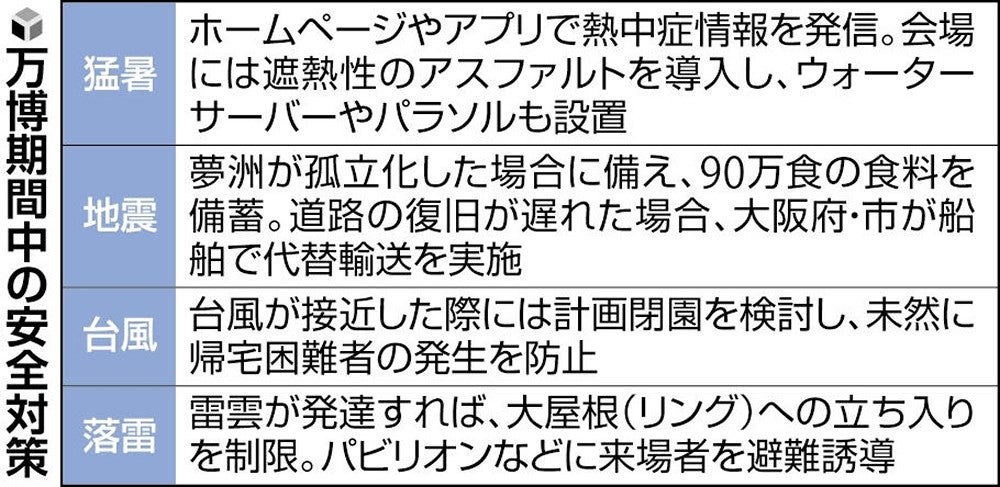 防災・危機管理政策に詳しい永松伸吾・関西大教授は「危機管理上の想定は平均ではなく、常に最悪の事態を考えて備えるのが原則。過去の万博の基準で大丈夫なのか」と疑問を呈した。