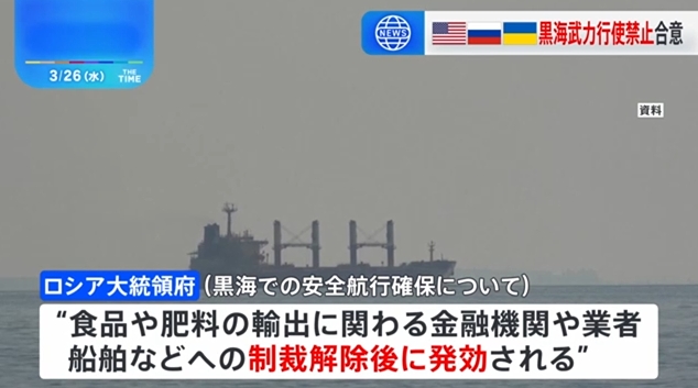 2025年3月25日、アメリカがロシアとウクライナとの間で、黒海における安全な航行を確保し、武力行使を控えることで合意に達したことが報じられました。