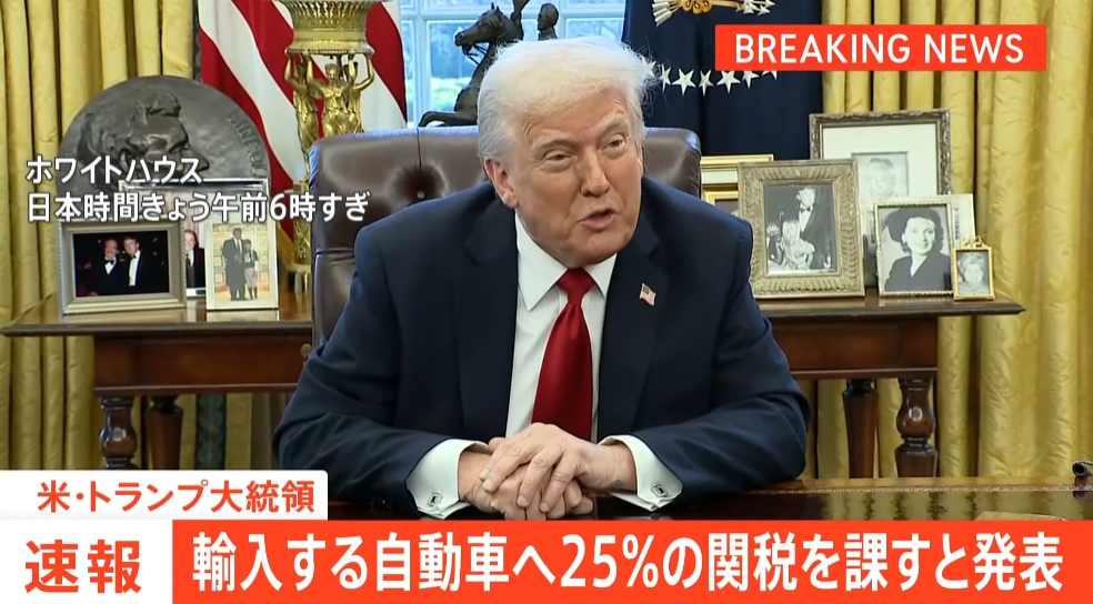 【速報】トランプ大統領、自動車に関税25%を発表「日本を含む全ての国が対象」