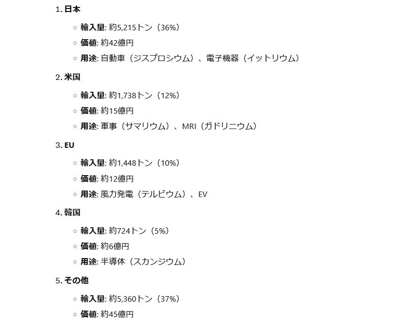 【速報】中国政府、米国報復措置で7種類のレアアースを輸出規制対象に設定「即日発効とする」→輸入量は日本が1位で米国の3倍「おい!」