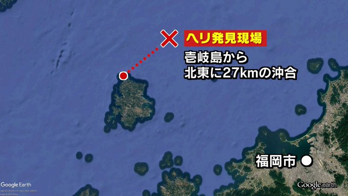 ヘリは午後5時すぎに壱岐島の北東約27キロの海上に転覆している状態で見つかりました。