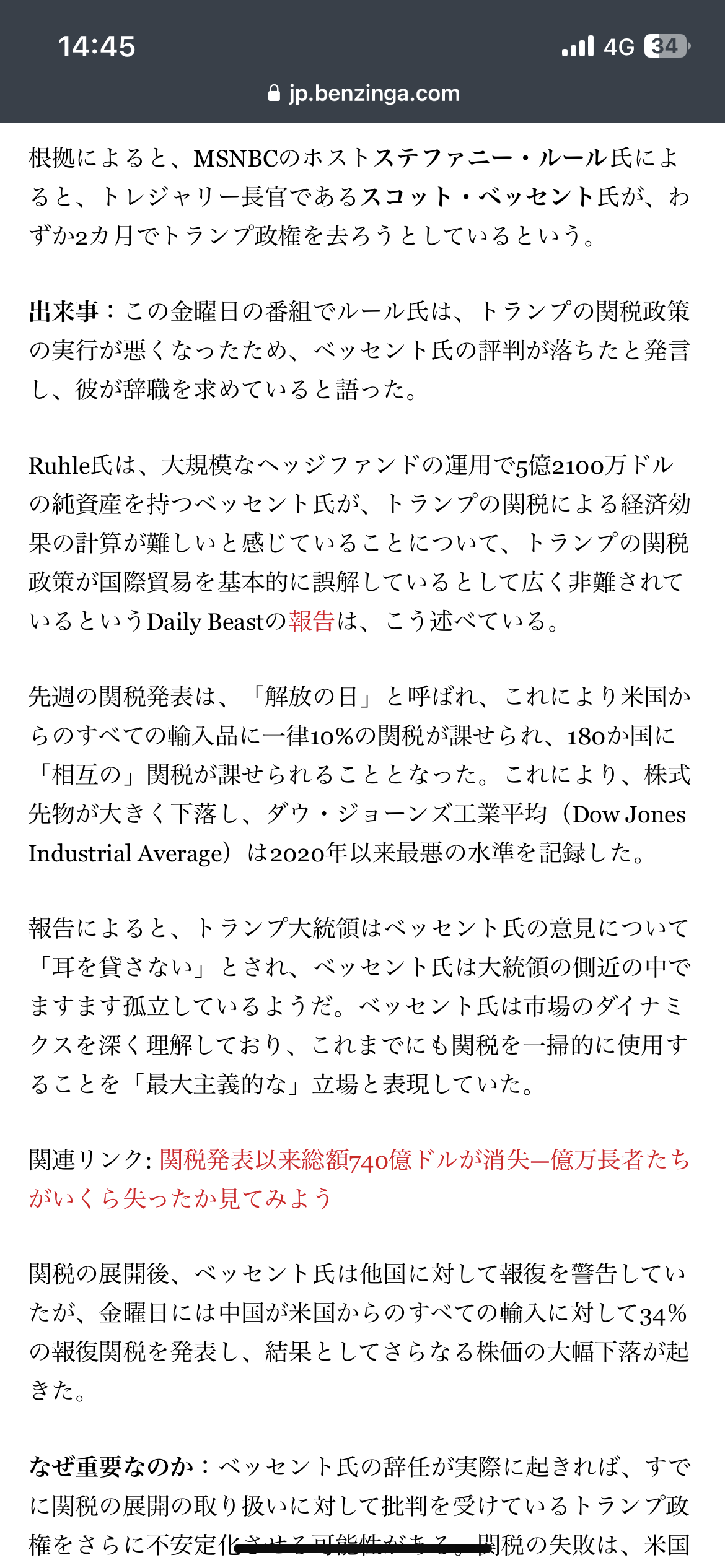 【速報】トランプ政権ベッセント財務長官、辞任模索中
