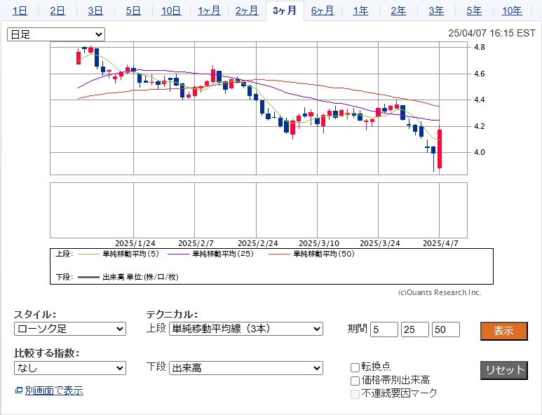 【ニューヨーク=伴百江】7日の米金融市場で米長期金利が急上昇(債券価格は急落)した。30年物、10年物の米国債を中心に売りが活発となり、利回りの急激な上昇を招いた。市場関係者の間では、中国が保有する米国債を関税問題の報復として売却しているとの観測が流れた。関税拡大でインフレ圧力が上昇するとの懸念も長期金利上昇の背景にある。
