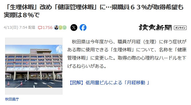 【朗報】女性の生理休暇、あまりにも取りづらいために体調管理休暇へ名称変更