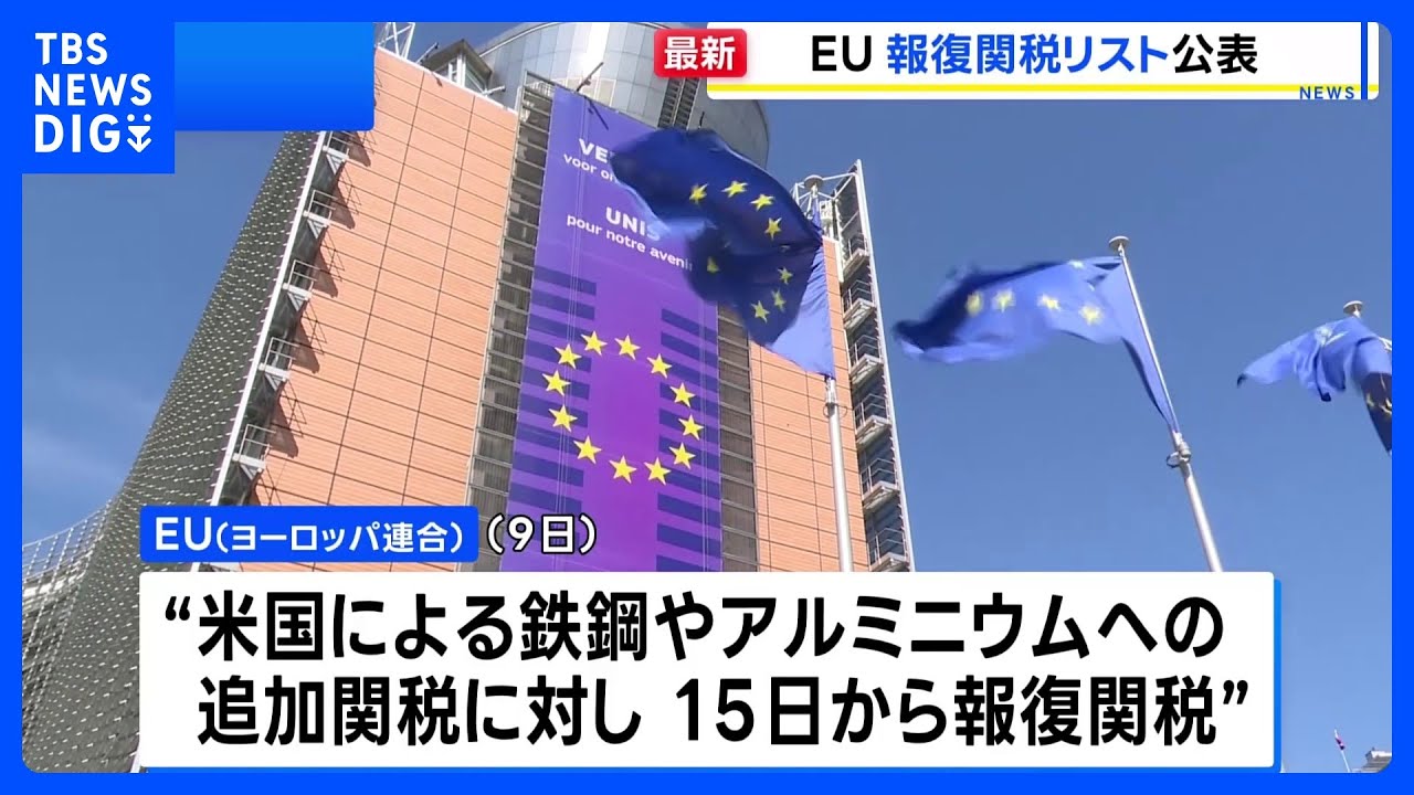 EU=ヨーロッパ連合は、アメリカのトランプ政権が発動している鉄鋼やアルミニウムへの追加関税に対し、およそ1600品目、3兆円相当の「報復関税」リストを公表しました。