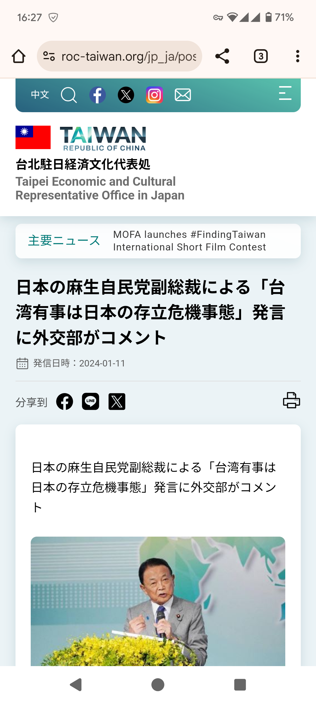 【速報】麻生太郎「台湾には2万人の日本人がいる。中国に攻められたら、日本は潜水艦や軍艦と総戦力で中国をぶっ叩く」 台湾外交部は感謝