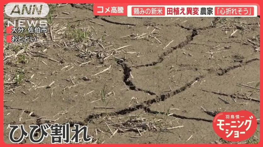 コメの価格が安定するために新米に期待がかかるなかで、田植えが始まったコメ作りの現場で異変が起きている。■雨不足で半分以上が作付けできず