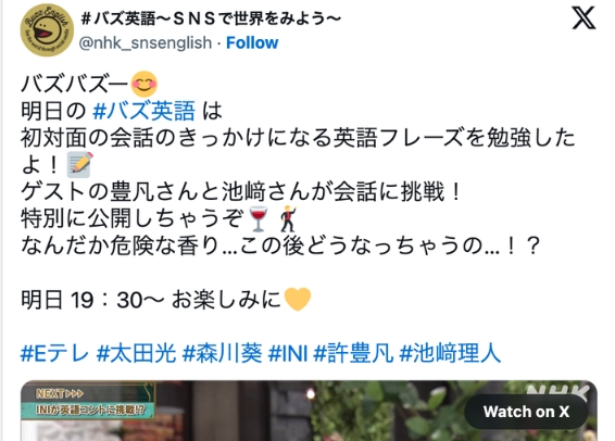 NHKEテレ番組公式X、親密な男性同士に「危険な香り」と投稿、のちに削除 「差別を助長する意図は全くない」と説明