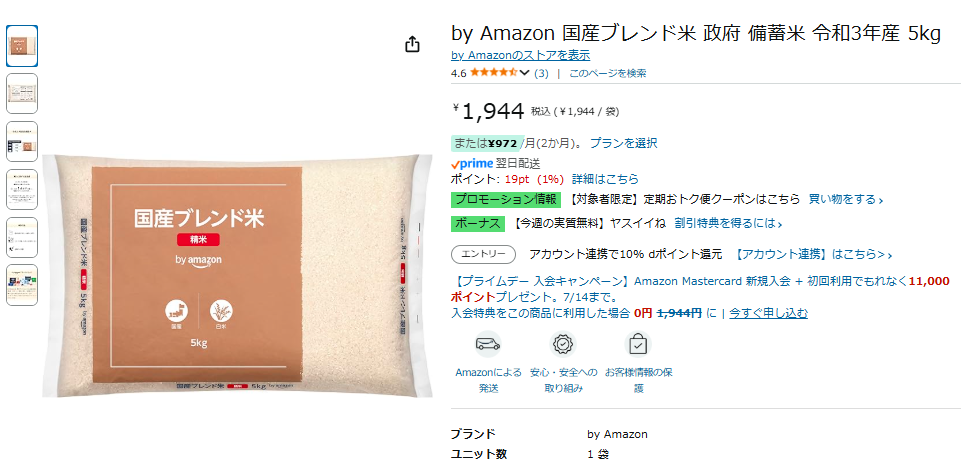 【臨時速報】アマゾンで備蓄米が5kg1900円で入荷!!現時点で在庫あり!!