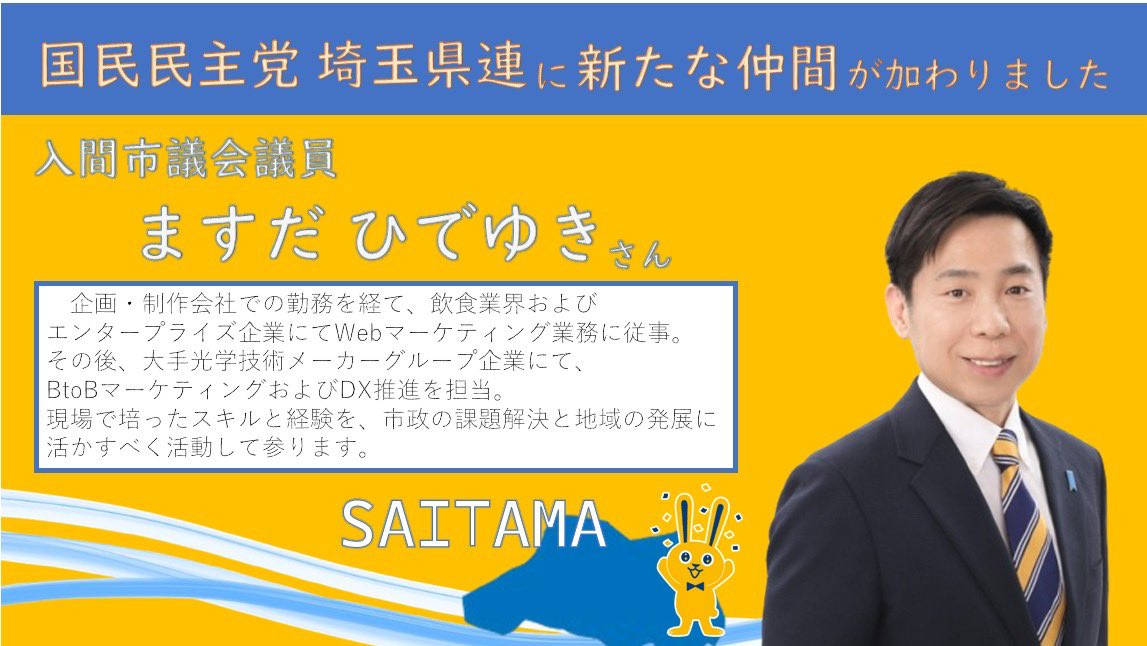 1: 名無し 2025/06/20(金) 16:17:41.61 ID:md7KiRXJ0 BE:519772979-PLT(15072)埼玉県入間市選挙管理委員会は、3月16日に投開票された埼玉県入間市議選(定数22)で得票トップで初当選した国民民主党公認の益田英主氏(52)について、当選無効を決定したと20日発表した。決定は19日付。別の市議から4月に「市内に居住実態がない」と当選無効の申し出があり、市選管が審査していた。益田氏は県選挙管理委員会に不服申し立てをするとしている。