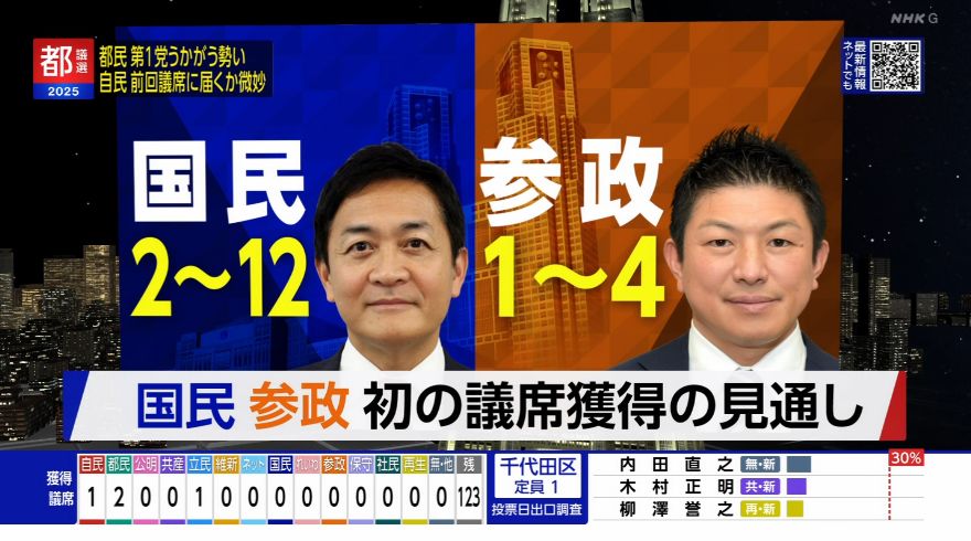 【東京都議選】参政党とれいわ新選組が初議席、自民党陥落 都民ファーストが第一党をうかがう勢い