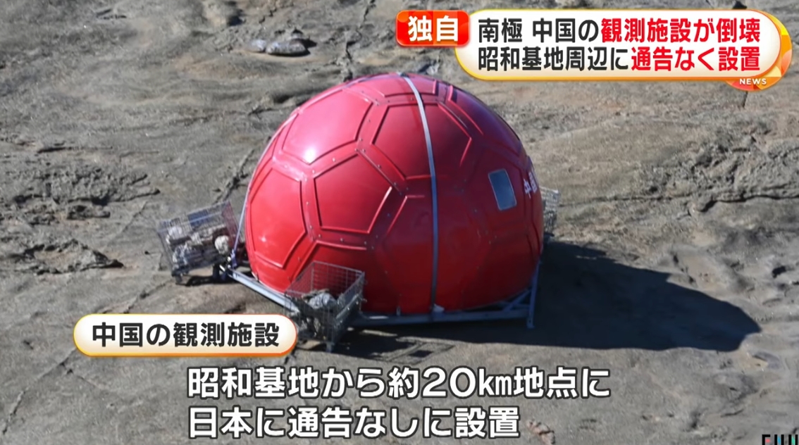 日本の南極観測活動の拠点、昭和基地周辺に通告なしに設置された中国の赤いドーム状の観測施設が倒壊していることがFNNの取材で明らかになりました。