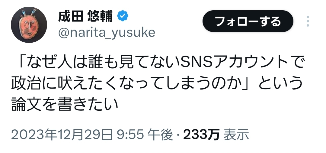 【批判殺到】成田悠輔「なぜ人は誰も見てないSNSで政治に吠えたくなるのかという論文を書きたい」
