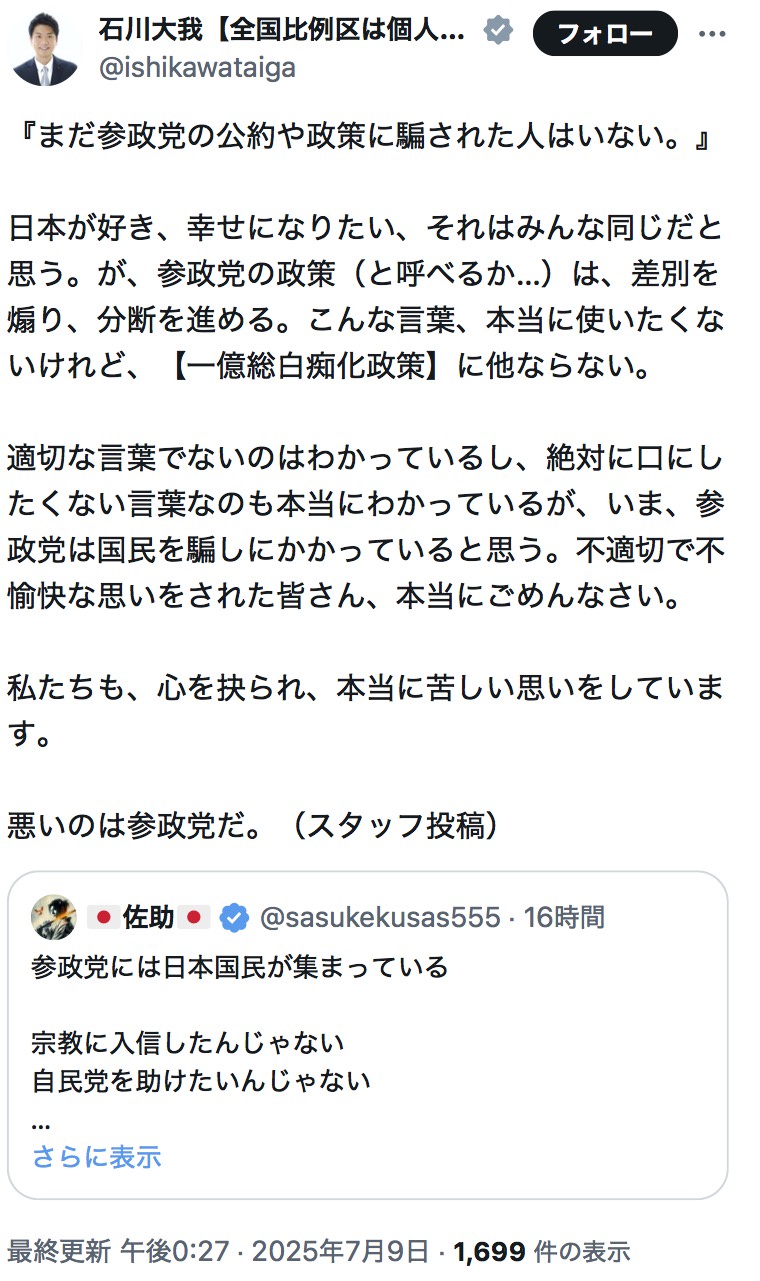 【速報】立憲「参政党の政策は【一億総白痴化政策】に他ならない 2025年7月10日 最終更新日時 : 2025年7月10日 loki.5ch.net カープドラ6西川篤夢!「日本を代表する遊撃手になりたい」【ドラフト会議2025】 カープドラ5赤木晴哉!191cm最速153キロ!佛教大の本格派右腕!【ドラフト会議2025】 カープドラ4工藤泰己!159キロ北の剛腕!【ドラフト会議2025】 カープドラ3勝田成!近畿大163cmセカンド!菊池涼介の後継者候補!【ドラフト会議2025】 カープドラ2齊藤汰直!亜大152キロエース!【ドラフト会議2025】 カープドラ1平川蓮!187cmのスイッチヒッター!立石正広を外し2度目の重複も新井監督がクジを引き当てる!【ドラフト会議2025】 【カープ実況】ドラフト会議2025!ドラ1立石正広の獲得なるか 緒方孝市カープドラ3指名で青学出禁!澤﨑俊和の逆指名まで10年間スカウト出禁 【朗報】広島、攻守最強都市だったwww 【悲報】彼女「ごめん!俺くんの貯金、情報商材に使っちゃった」→…問い詰めたらギャン泣きされたんだが俺が悪いのか? 【速報】立憲「参政党の政策は【一億総白痴化政策】に他ならない 1: 名無し 2025/07/10(木) 07:46:21.80 ID:TrNez8Ld0● BE:487816701-PLT(13060) ■応援クリック感謝 台湾侵攻なら北京を爆撃と警告された中国・習近平「北京を?」 トランプ「選択肢はない。爆撃しなければならない」と表明 「テレ東音楽祭」に出演した有名歌手が”突然の爆弾発言”、「テレビに出してはダメな人なのでは?」と視聴者困惑 【悲報】 大阪万博、7月に入り来場者が激減…なぜなのか? 続きを読む 続きを見る カープドラ6西川篤夢!「日本を代表する遊撃手になりたい」【ドラフト会議2025】 カープドラ5赤木晴哉!191cm最速153キロ!佛教大の本格派右腕!【ドラフト会議2025】 カープドラ4工藤泰己!159キロ北の剛腕!【ドラフト会議2025】 カープドラ3勝田成!近畿大163cmセカンド!菊池涼介の後継者候補!【ドラフト会議2025】 カープドラ2齊藤汰直!亜大152キロエース!【ドラフト会議2025】 カープドラ1平川蓮!187cmのスイッチヒッター!立石正広を外し2度目の重複も新井監督がクジを引き当てる!【ドラフト会議2025】 【カープ実況】ドラフト会議2025!ドラ1立石正広の獲得なるか 緒方孝市カープドラ3指名で青学出禁!澤﨑俊和の逆指名まで10年間スカウト出禁 関連記事 関連記事はありません。