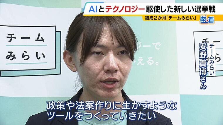 本来、政党助成金は所属議員の政治活動や選挙活動、党運営の資金として使われる。チームみらいは政党助成金をそうしたことに使わず、政治を変えていくためのテクノロジー開発費用に充てると宣言している。そうした部分も、旧来の政党とスタンスが異なる。