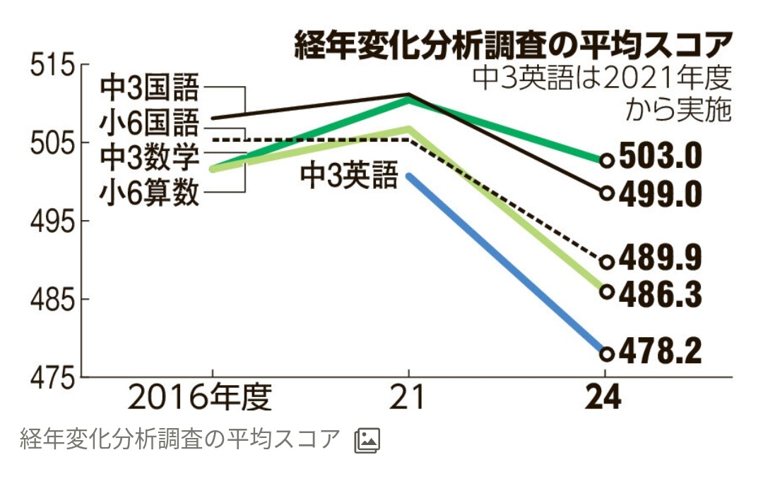 成績が下がった要因について文科省は「明確には示せない」とする。ただ、中学英語はコロナ禍が影響した可能性を挙げた。中3生は小学校で外国語を習い始めた時期がコロナ禍と重なる。「小学校はコミュニケーション重視の指導だが『話すこと』が積極的にできなかった影響」とみる。ある文科省幹部は「こんなに有意に下がったことはない。深刻だ」と明かす。学力に関する文科省の専門家会議に長く関わる耳塚寛明・お茶の水女子大名誉教授(教育社会学)は「驚いた。要因は複合的で、一つずつ確認する作業が必要」と指摘した。